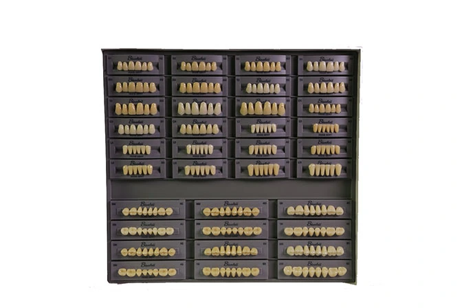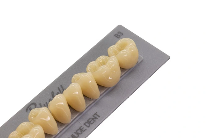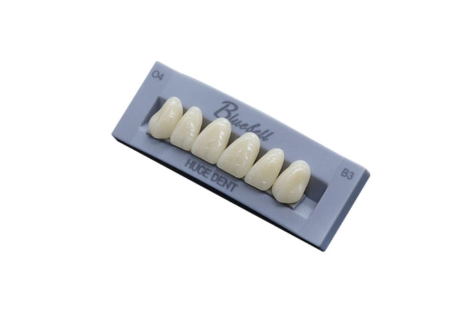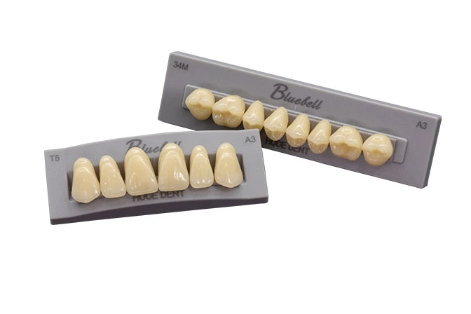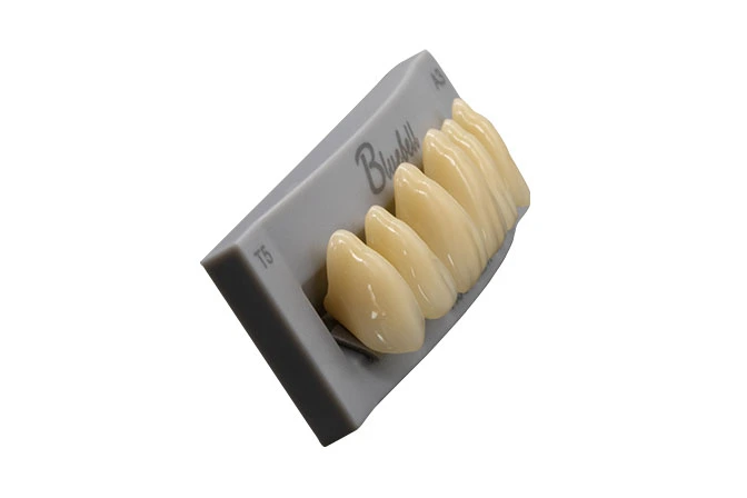 Bluebell is a classic tooth line made from PMMA resin, two-layered for both anterior and posterior.