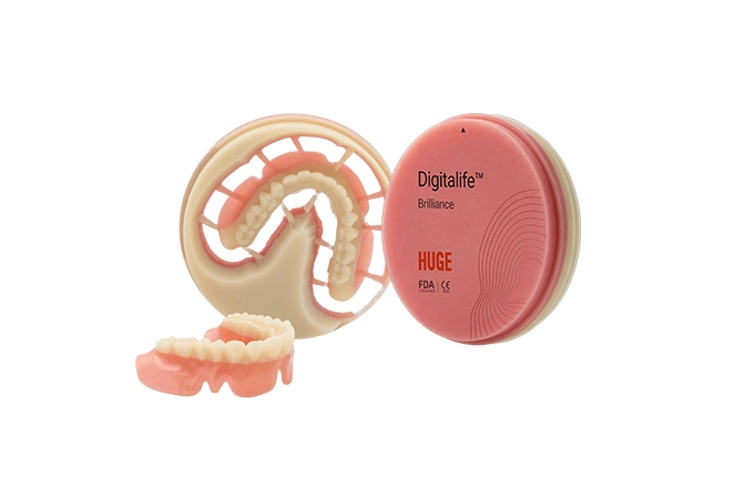 HUGE Full Denture PMMA block is designed for full denture. Combined with teeth and gum shade, the full denture block provides a one-step milling solutions for dental laboratory to simplify the process.