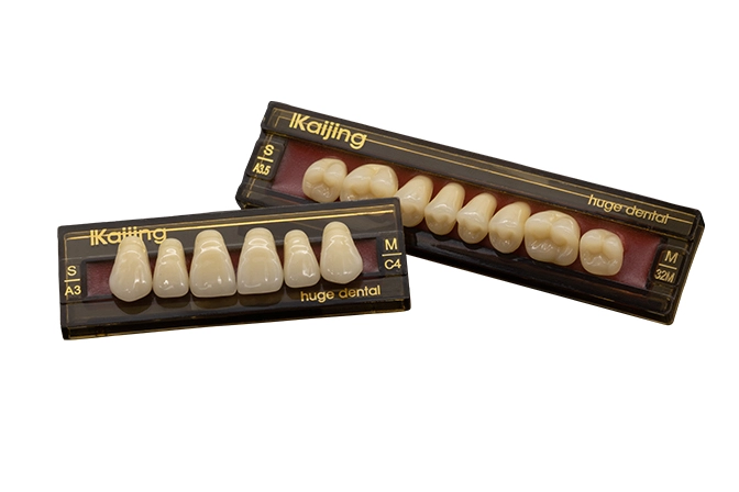 KAIJING is one of the premium tooth lines and its anterior teeth are composed of four layers, and posterior teeth have two layers.