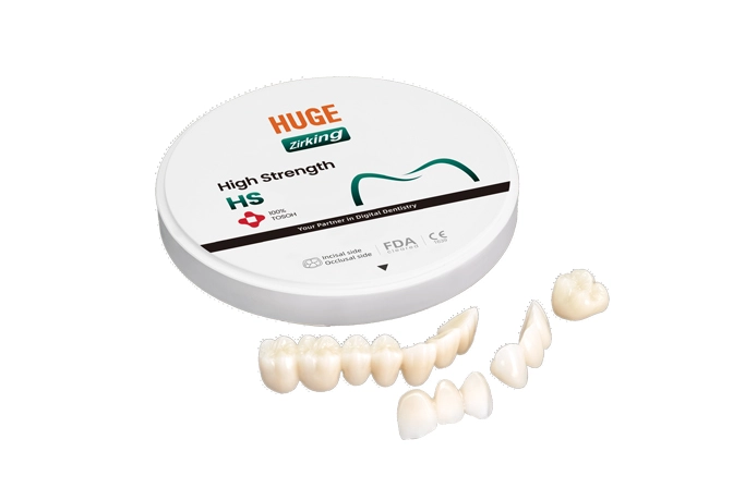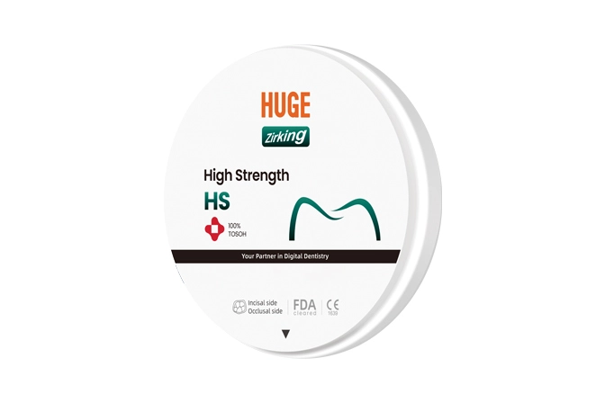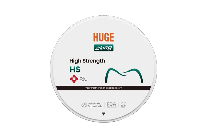 HUGE Premium HS zirconia is the strongest materials, which is suitable to make coping and complex dental structures. The highest flexural strength realize the lowest risk to crack or fracture.