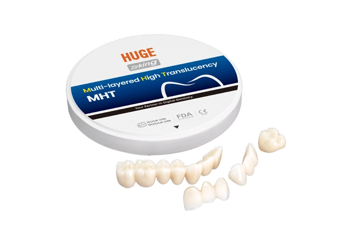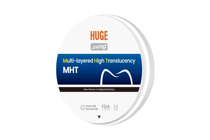 HUGE Prime MHT zirconia provides multilayer shade transition, which realizes the natural appearance of natural teeth. MHT zirconia helps improve the beauty and save the process time for dental laboratories.